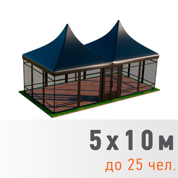 Черные пагоды — стильные конструкции с темным тентом для вечерних мероприятий, презентаций и мероприятий в современном стиле. Линейка включает модели 5×5, 5×10 и 5×15 метров в обычном (29 000 — 80 000 рублей) и остекленном исполнении (58 500 — 142 500 рублей).