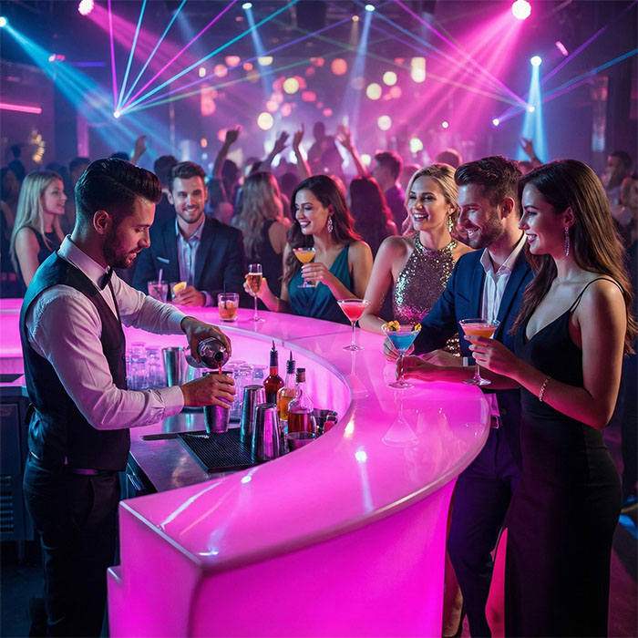 - светящиеся барные стойки (прямые и угловые секции);