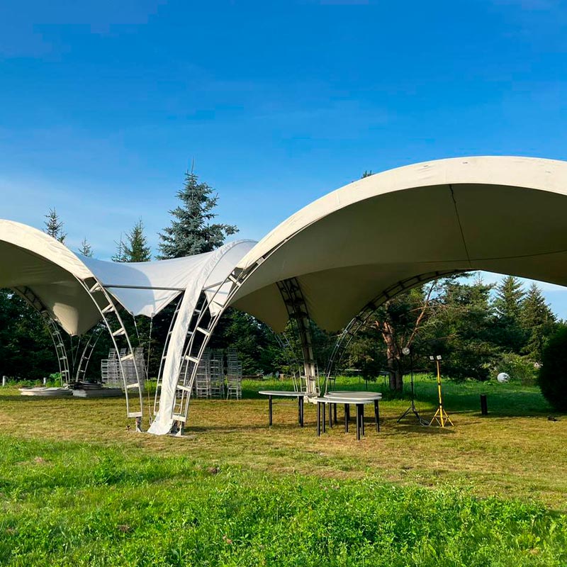 Шатер идеально подходит для проведения выездных регистраций, корпоративных фуршетов, музыкальных фестивалей или презентаций. Прочный каркас и эстетичное покрытие позволяют использовать различные варианты декора: от световых гирлянд и флористических композиций до брендированных баннеров, создавая неповторимую атмосферу праздника.