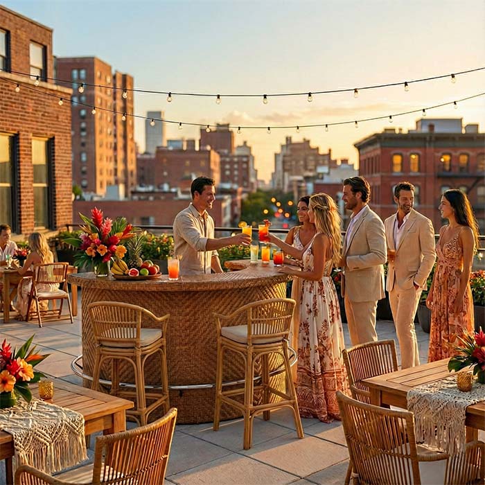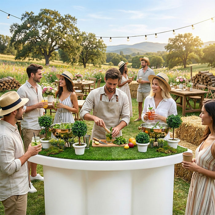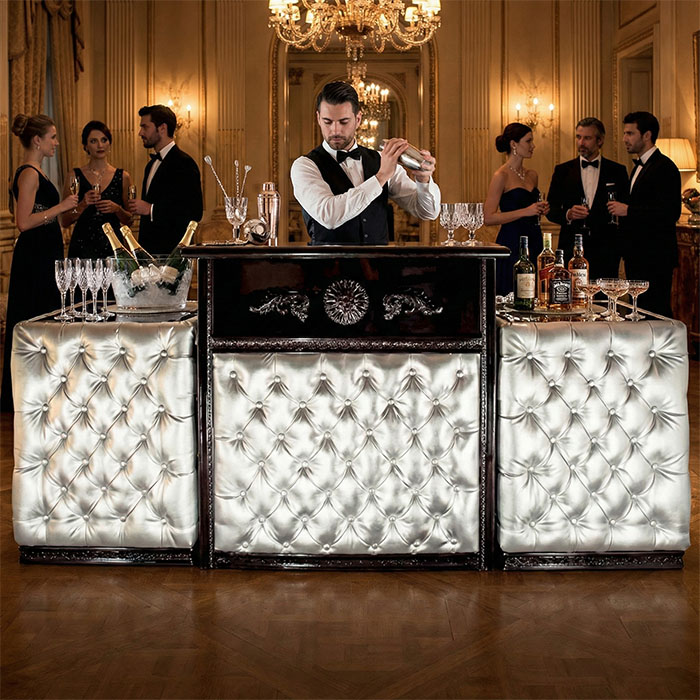 Стильная барная стойка-трансформер со светодиодной подсветкой сочетает функциональность барной зоны и фуршетного стола. Изготовлена из высококачественного экологически безопасного пластика с эргономичной формой для комфортной работы барменов и удобного обслуживания гостей.