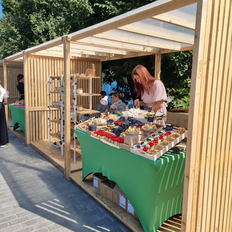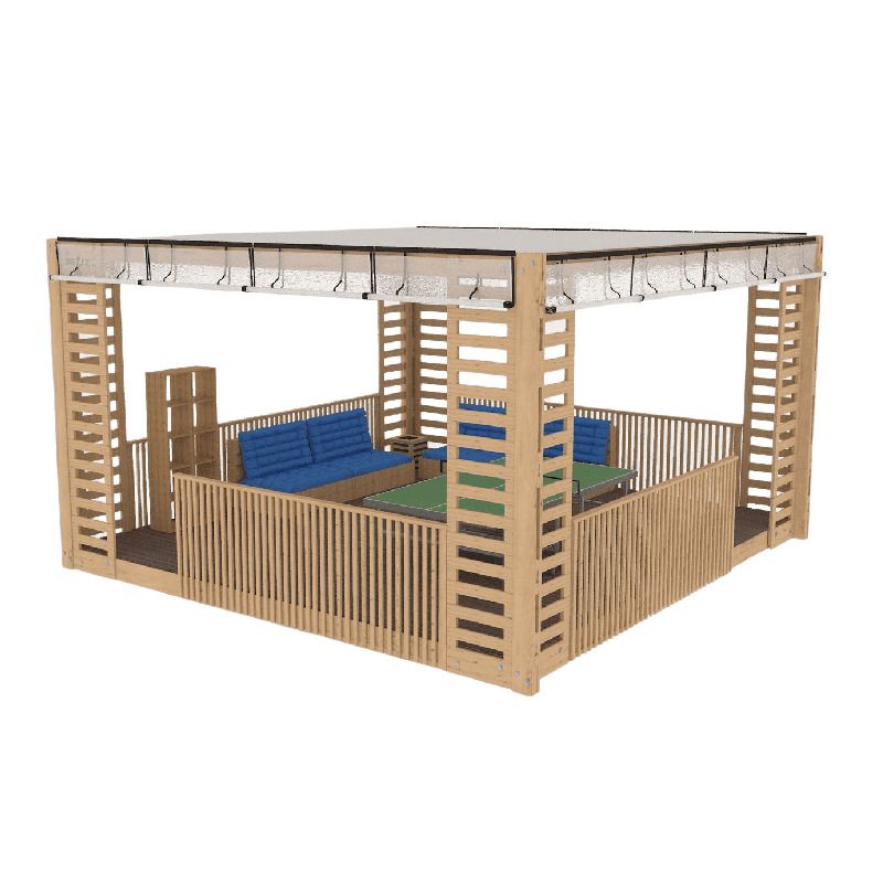 Создайте идеальные условия для загородного отдыха или торжественного приема под открытым небом с помощью аренды просторной деревянной веранды. Конструкция размером 5 на 5 метров выполнена из экологически чистых материалов и станет центральным элементом вашей площадки.