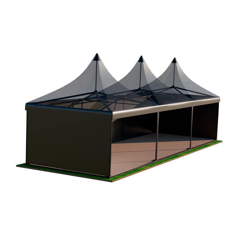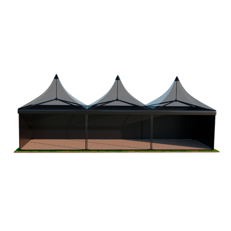Черный шатер Пагода размером 5х15 метров — это эксклюзивное решение для организаторов, стремящихся создать по-настоящему стильное и статусное пространство на открытом воздухе. Необычный темный цвет тента моментально привлекает внимание и служит идеальным фоном для яркой вечерней подсветки, профессиональных фотосессий и дизайнерского декора. Конструкция изготовлена из высокопрочных износостойких материалов, которые гарантируют полную герметичность и устойчивость даже при порывистом ветре.