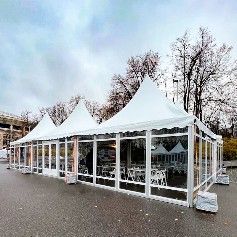 Шатер Пагода модели «Павильон» размером 5 на 10 метров — это сочетание изысканной восточной эстетики и высочайшей функциональности. Благодаря характерной форме купола, такая конструкция становится центральным украшением любого события на открытом воздухе.