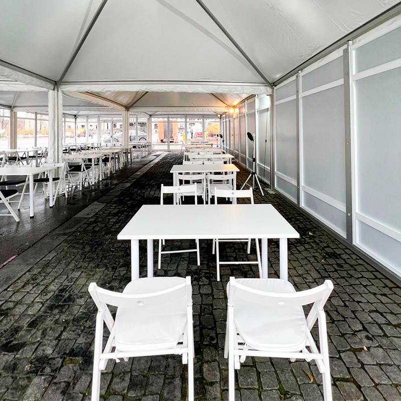 Каркас выполнен из усиленного металла, что гарантирует устойчивость, а купол из плотного полимера служит надежным барьером против осадков и палящего солнца. Внутреннее пространство позволяет гибко организовать климат-контроль: установка систем обогрева или кондиционирования превращает павильон в комфортную зону отдыха, защищенную от сквозняков и капризов погоды.