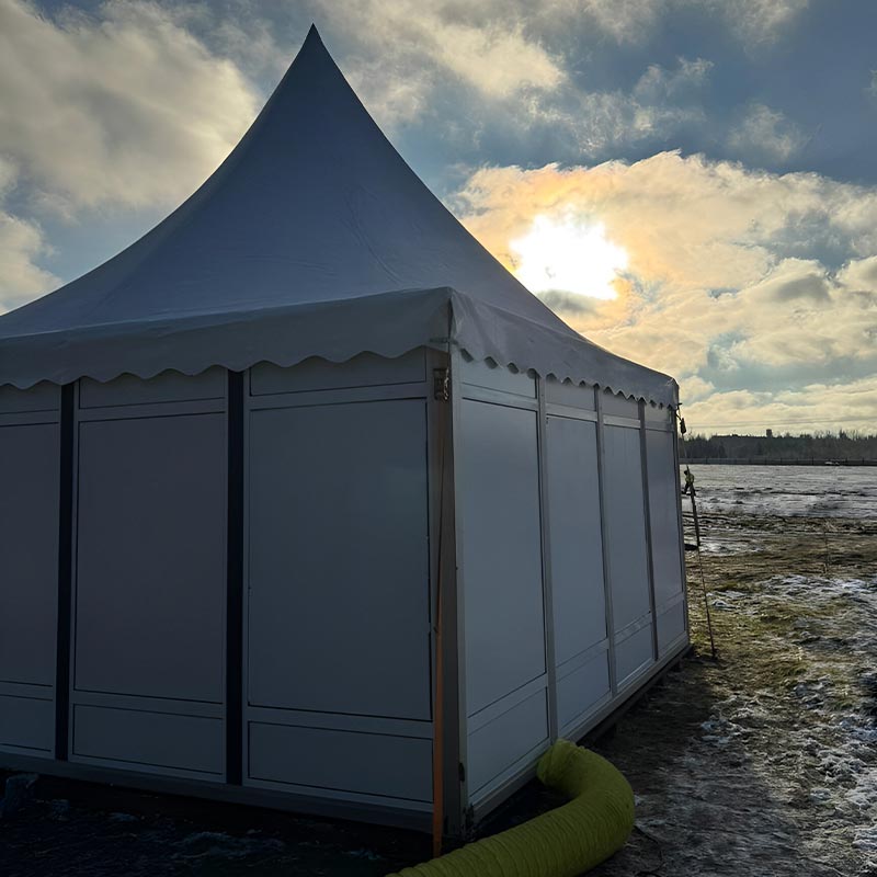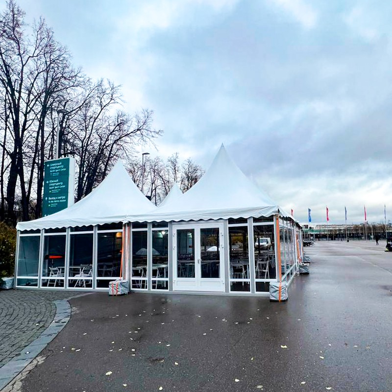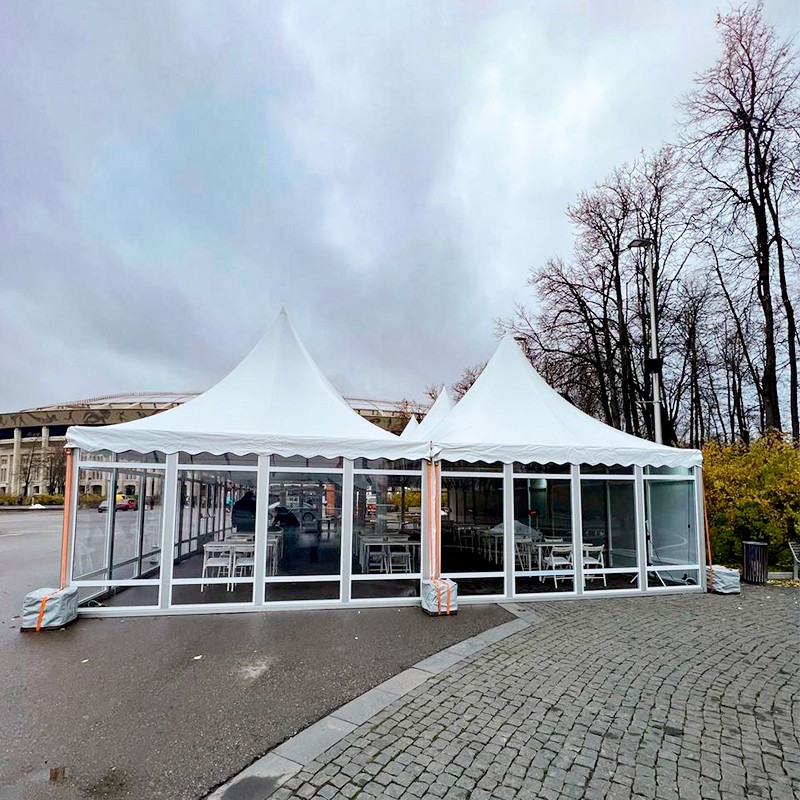 Благодаря прочным материалам и продуманной инженерии, тент сохраняет устойчивость при различных погодных условиях, включая ветер и осадки, что позволяет использовать его в любое время года. Использование экологически безопасных компонентов гарантирует комфорт гостей, а возможность быстрого демонтажа и переноса делает этот вариант максимально экономичным и удобным для организаторов событий любого масштаба.