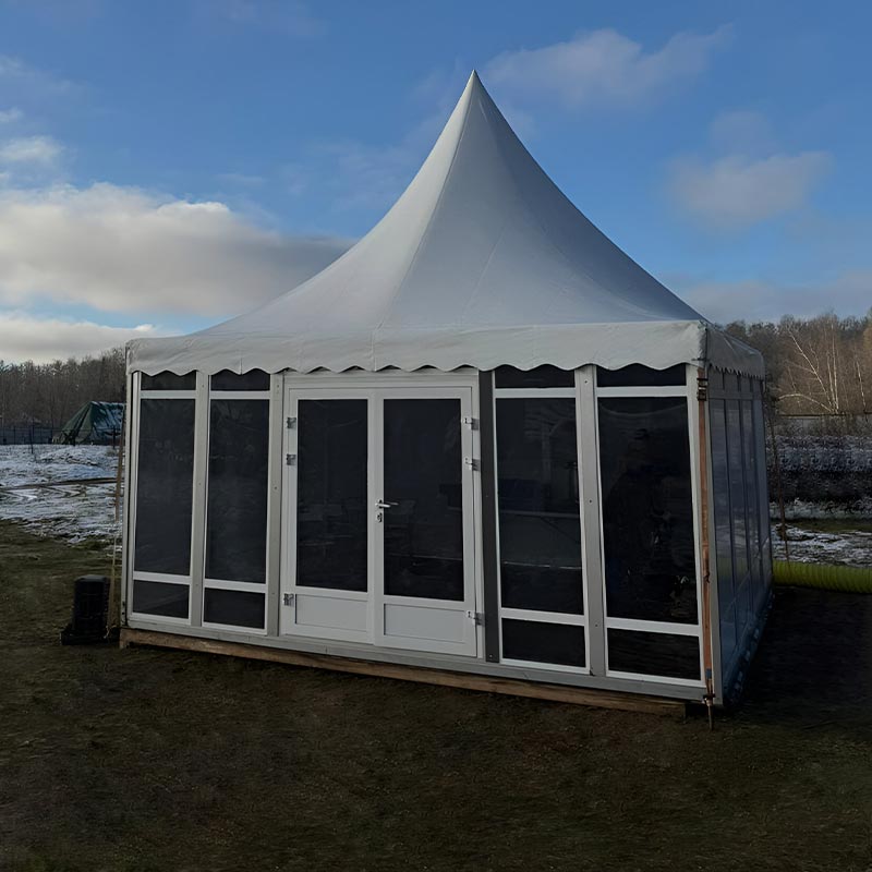 Предлагаем в аренду элегантный шатер Пагода «Павильон» размером 5 на 5 метров, который сочетает в себе эстетическую привлекательность и высокую функциональность. Эта мобильная конструкция идеально подходит для оперативного обустройства праздничной или деловой площадки под открытым небом.