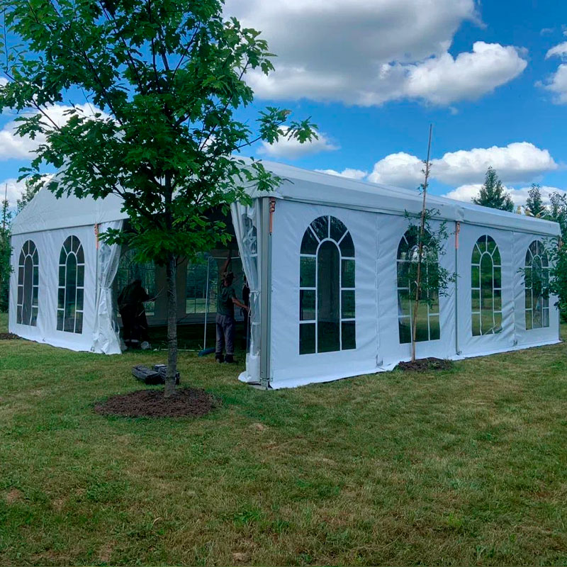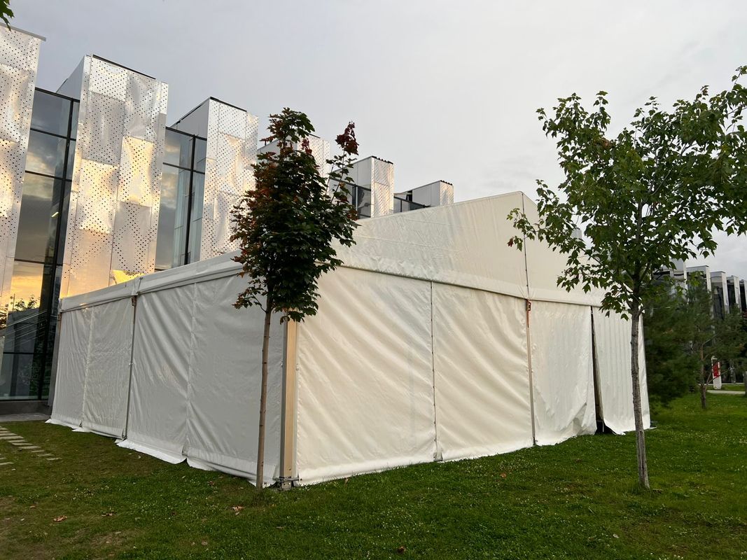 Прокат тентового павильона площадью 100 квадратных метров представляет собой универсальное решение для воплощения самых смелых идей на свежем воздухе. Благодаря своей функциональности, такая конструкция идеально подходит как для пышных торжеств, так и для строгих деловых событий. Средние габариты шатра позволяют с комфортом разместить гостей на свадьбе, юбилее или семейном празднике.