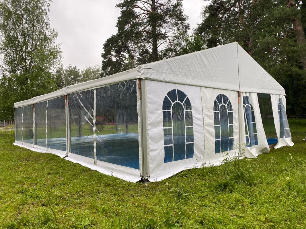 Просторный тентовый павильон площадью 150 квадратных метров представляет собой идеальное решение для организации масштабных событий на открытом воздухе. Данная конструкция отличается исключительной вместительностью и универсальностью, что позволяет использовать ее для пышных свадебных торжеств, корпоративных презентаций и художественных инсталляций.