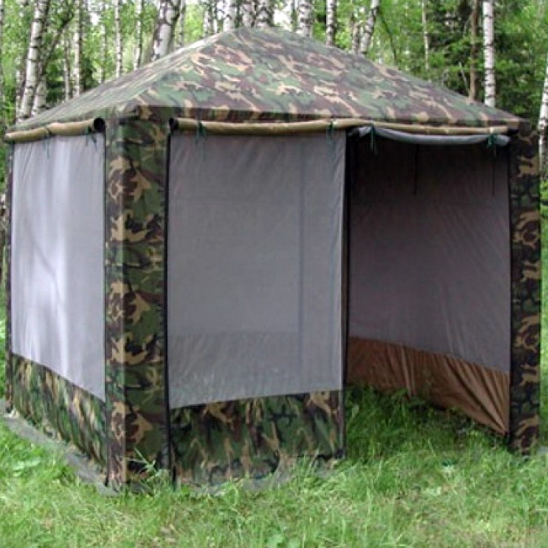 Стенки из качественной москитной сетки создают прекрасный воздухообмен, защищая от насекомых в жару, а плотные шторки надежно укроют гостей от ветра и внезапного дождя. Устойчивый каркас и износостойкий материал тента гарантируют долговечность и эффективную защиту от ультрафиолета.