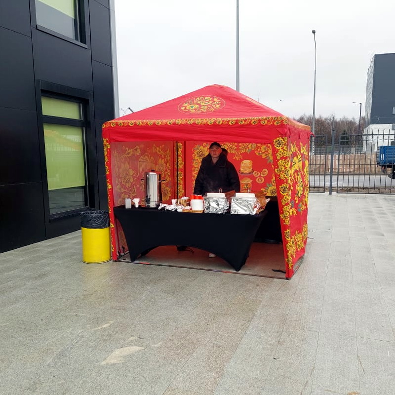 Организуйте стильное и функциональное пространство для вашего события с помощью мобильного ярмарочного тента. Данная модель размером 2,5 на 2,5 метра отличается колоритным оформлением с традиционными узорами, что неизменно привлекает внимание посетителей и создает праздничную атмосферу. Шатер идеально подходит для проведения выездных дегустаций, участия в городских фестивалях, организации торговых точек или обустройства уютных зон отдыха на свежем воздухе.