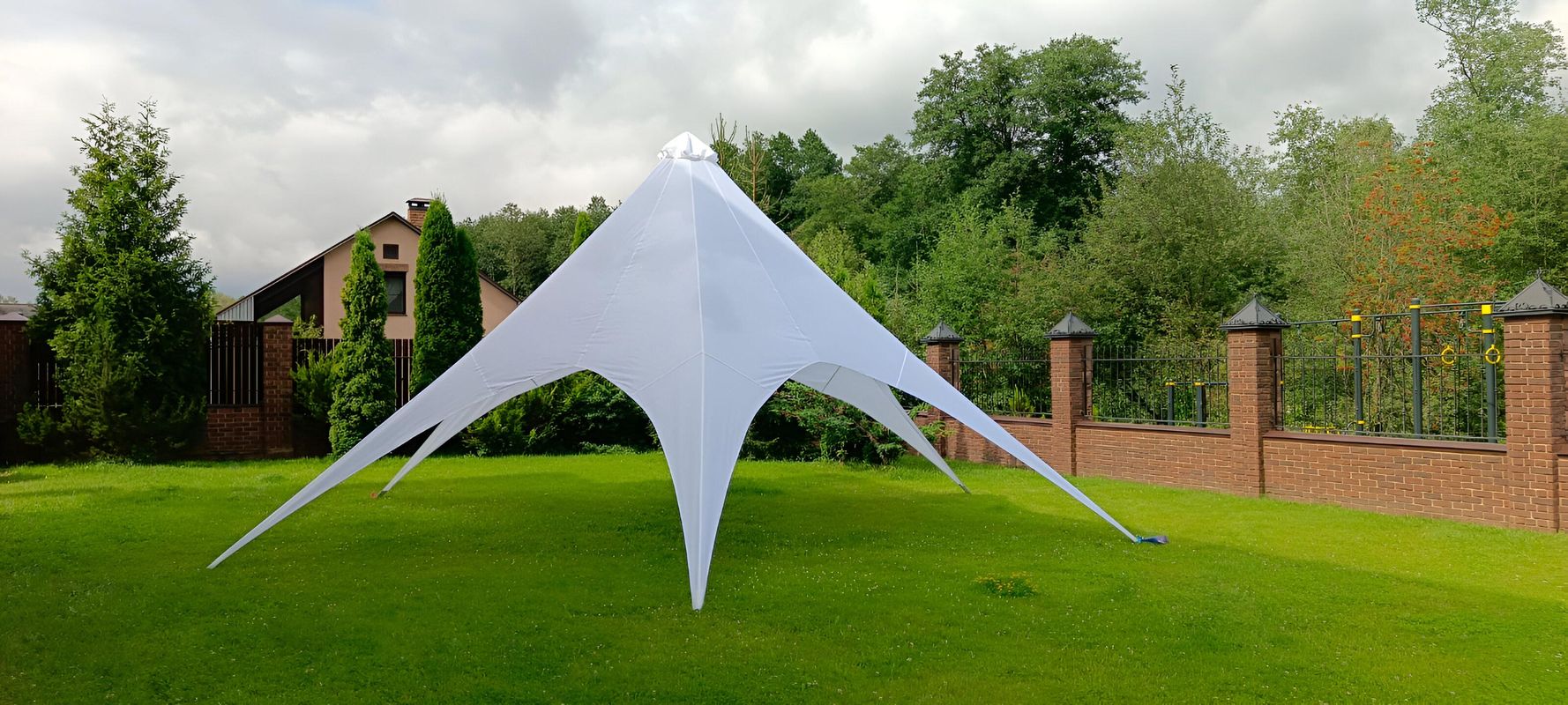 Элегантный тент Звезда площадью 26 квадратных метров — идеальное решение для камерных мероприятий, семейных выездов на природу или небольших вечеринок под открытым небом. Компактные габариты позволяют легко разместить его на любом участке, создавая уютную зону отдыха.