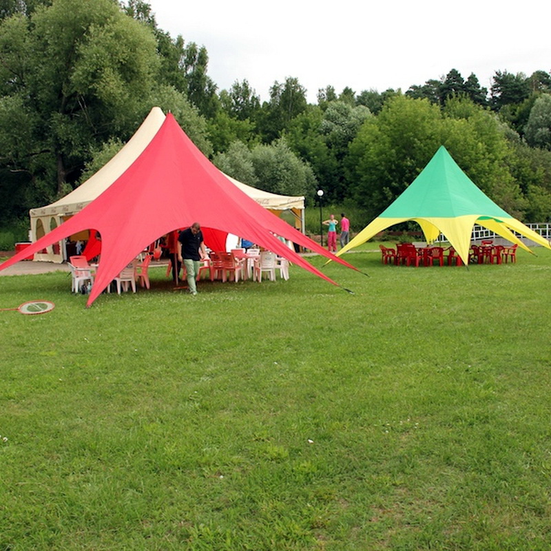 Тент Звезда площадью 48 квадратных метров — это идеальное решение для создания комфортного пространства на свежем воздухе. Благодаря своей уникальной форме и внушительным размерам, этот шатер станет центральным элементом любого события: от частного праздника и корпоратива до спортивных соревнований, ярмарок или концертов. Внутри можно легко организовать уютную фуршетную зону, место для отдыха или обеденную группу.