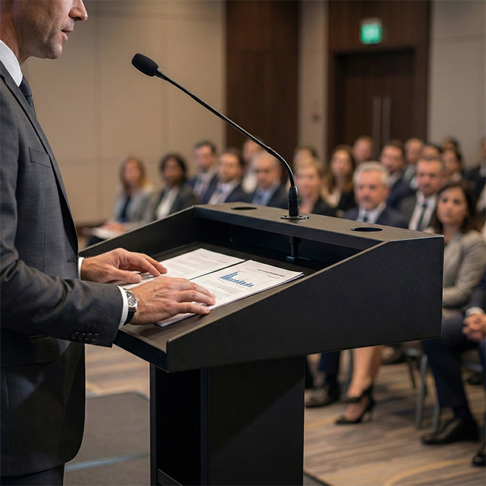 Хочу лично поблагодарить за помощь в проведении деловой конференции. Складные стулья, трибуна для выступлений и высокие столы для кофе-брейка – всё было доставлено вовремя и расставлено согласно планировке.